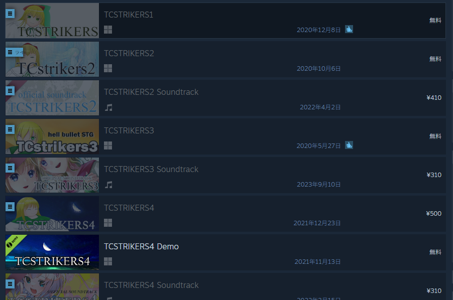 Developed the 2D shooting game series “TCSTRIKERS”.