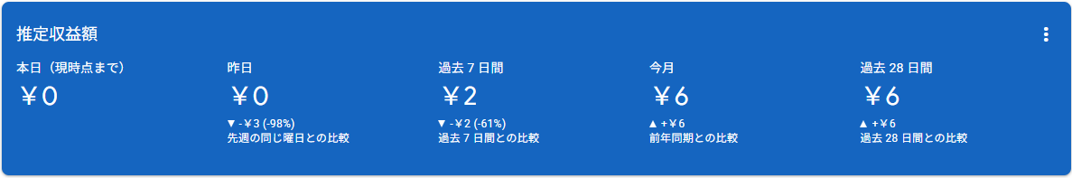 自作ゲームのノウハウをまとめた本サイトで、広告が表示されて6円の収益が発生しました。